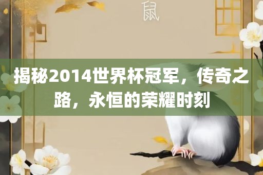 摘要:本文将为您揭秘2014年世界杯冠军的传奇之路,带您回顾那段永恒的荣耀时刻。从队伍的组建到赛场上的精彩表现,文章将详细讲述这支队伍如何在世界杯舞台上大放异彩,赢得无数球迷的喝彩和尊敬。阅读本文,您将深入了解这支冠军队伍的辉煌历程和荣耀时刻。