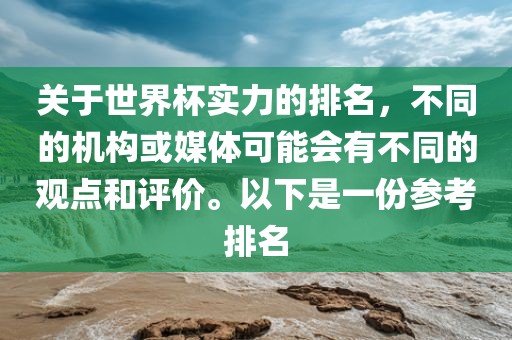 关于世界杯实力的排名,不同的机构或媒体可能会有不同的观点和评价。以下是一份参考排名
