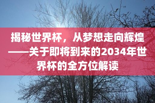 揭秘世界杯,从梦想走向辉煌——关于即将到来的2034年世界杯的全方位解读