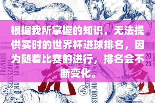 摘要:由于比赛的实时进行,无法提供准确的世界杯进球排名。随着比赛的进展,排名会不断变化,因此无法给出实时的准确信息。