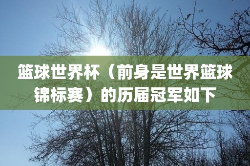 篮球世界杯(前身世界篮球锦标赛)历届冠军摘要:自篮球世界杯创办以来,多个国家和地区的队伍在比赛中崭露头角,夺得冠军荣誉。其中包括美国、阿根廷、巴西等篮球强国。这些国家在篮球领域拥有深厚的传统和实力,多次在世界杯赛场上展现出精湛的技艺和团队合作精神。篮球世界杯作为世界最高水平的篮球赛事之一,不断推动篮球运动的发展,并吸引了全球篮球爱好者的关注与热情参与。