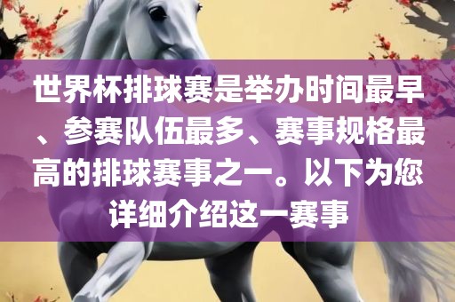 世界杯排球赛是举办时间最早、参赛队伍最多、赛事规格最高的排球赛事之一。以下为您详细介绍这一赛事