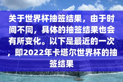 关于世界杯抽签结果,由于时间不同,具体的抽签结果也会有所变化。以下是最近的一次,即2022年卡塔尔世界杯的抽签结果