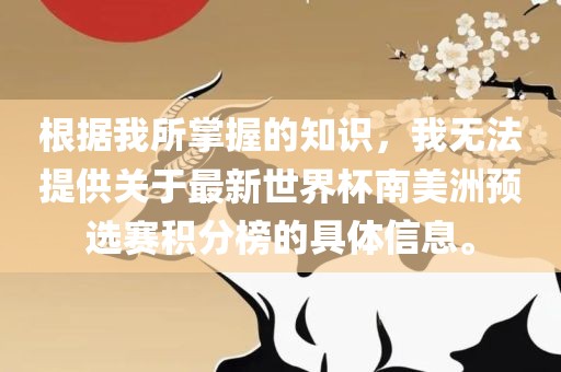 根据我所掌握的知识,我无法提供关于最新世界杯南美洲预选赛积分榜的具体信息。